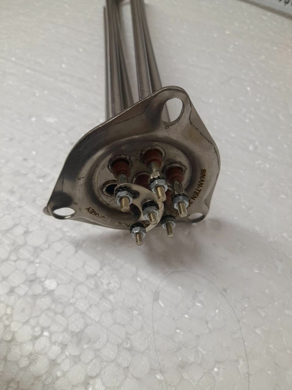 Купить Блок ТЭН для посудомоечной машины . из нержавейки 6000W / 220-380V / L400мм на треугольном фланце 90мм*90мм*90мм (Межосевое расстояние по крепежным отверстиям на фланце 75мм) SNAN, Турция с доставкой по всей России.