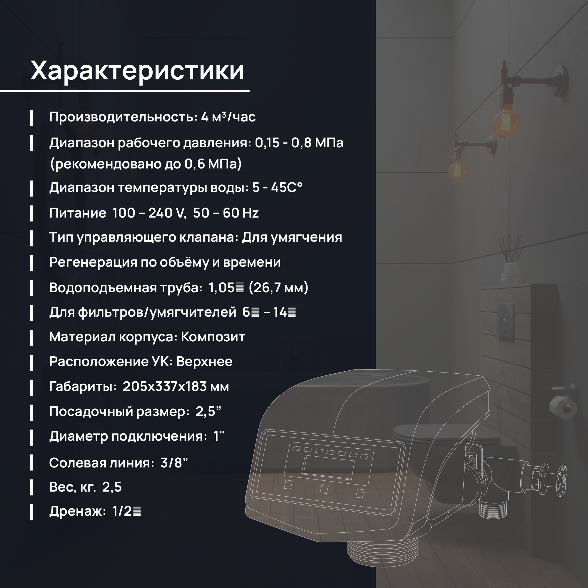 Тип управляющего клапана: для умягчения