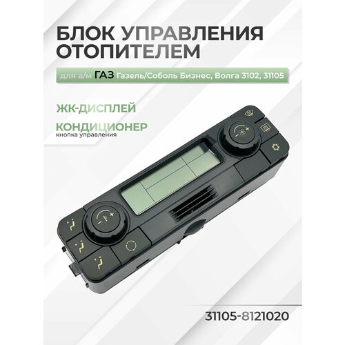 Блок управления отопителем электронный нового образца с ЖК-дисплеем с кнопкой кондиционера для автомобиля Газель Бизнес, трех- и семиместная версии. Подходит для моделей с двигателем УМЗ-4216 (Евро-4).