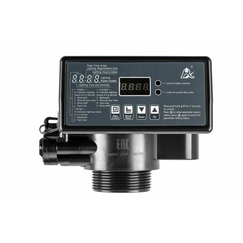 Блок управления RUNXIN F116Q3 1" ( автоматический фильтр-таймер ) Автоматический клапан управления Runxin F116Q3 со счетчиком предназначен для засыпных умягчителей воды. Применяется для управления процессом промывки и регенерации фильтрующего материала в системах умягчения и обезжелезивания. Особенности Runxin F116Q3 Надежная дисковая конструкция клапана управления Регенерация фильтрующего материала реагентом снизу вверх Функция блокировки кнопок. В случает неиспользования в течение одной минуты, клавиатура блокируется автоматически. Для снятия блокировки достаточно нажать определенное сочетание клавиш Возможность соединения выходного сигнала с повышающим насосом, соленоидным клапаном и другим оборудованием Регенерация системы может продолжаться неоднократно, при этом возможно задавать количество обратных промывок в зависимости от мутности воды. Блоки Runxin F116Q3 легко объединяются между собой в системы до 5 штук Характеристики Runxin F116Q3 Страна производства Runxin F116Q3 Китай Гарантия производителя 1 год Производительность, м³/час 4 Рабочее давление, бар до 6.0 Рабочая температура, °С + 5 — + 50 Присоединительный размер 1″ Материал корпуса Композит Управление Runxin F116Q3 автоматическое Тип управляющего клапана для умягчения Регенерация по расходу и времени Дренаж 3/4″ Солевая линия 3/8″ Посадочный размер 2,5” Водоподъемная труба 1.05″ (26,7 мм) Расположение УК верхнее Для фильтров/умягчителей 6-12″ Питание 100 — 240 V, 50 — 60 Hz Вес, кг 2 Высота, мм 190 Ширина, мм 200 Глубина, мм 200