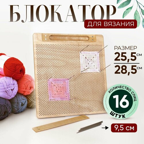 Блокатор для мотивов FineTech размером 25,5*28,5 см станет незаменимым помощником для любителей вязания. В комплекте с блокировочной доской идут 16 металлических спиц, которые фиксируют квадрат, что придает ровную форму при высыхании.