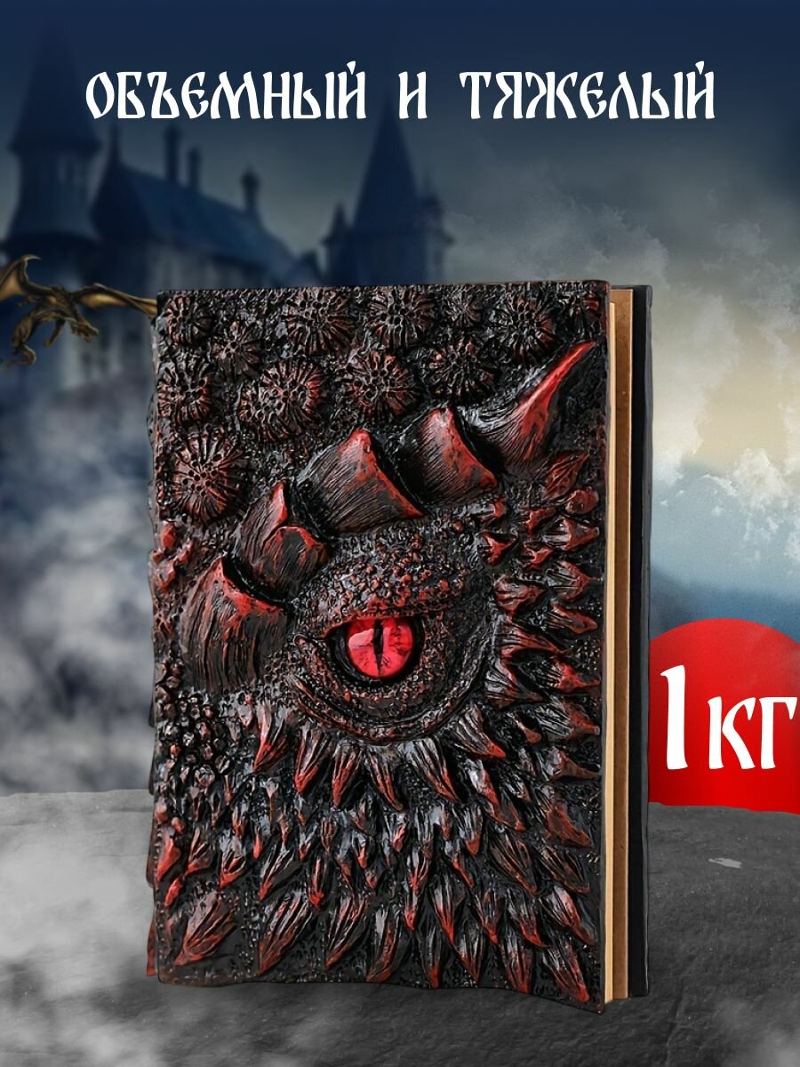Крутой мерч - объемный и тяжелый (весит почти 1 кг.) блокнот (записная книжка) формата А 5 с имитацией глаза и кожи Огненного дракона из тисненной смолы по мотивам американского фэнтезийного сериала "Дом Дракона", являющегося независимым приквелом легендарно-культового сериала «Игры престолов».