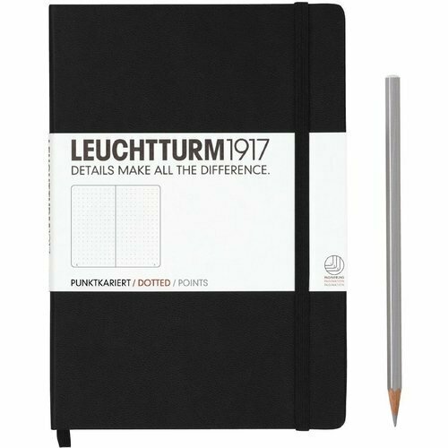 Блокнот Leuchtturm 1917 имеет 249 страниц в точку плотностью 80 г/м2. Он подойдет для рабочих и повседневных записей в офисе и дома, пригодится деловым и творческим людям. Размер блокнота составляет 14 х 21 см. Карандаш размещен на фото для ориентира по размерам блокнота/ежедневника и не входит в