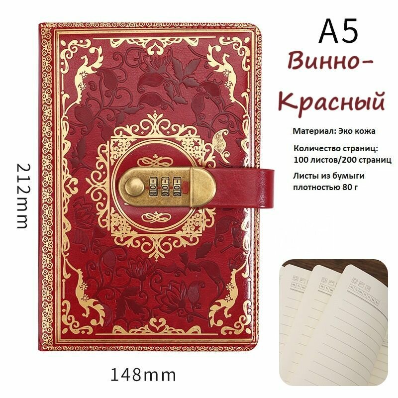 Представляем вашему вниманию стильный блокнот с кодовым замком винно-красного цвета, который станет идеальным помощником для записей, планирования и творчества. Этот уникальный ежедневник порадует вас не только оригинальным дизайном, но и высококачественной бумагой, позволяющей легко писать и рисовать.