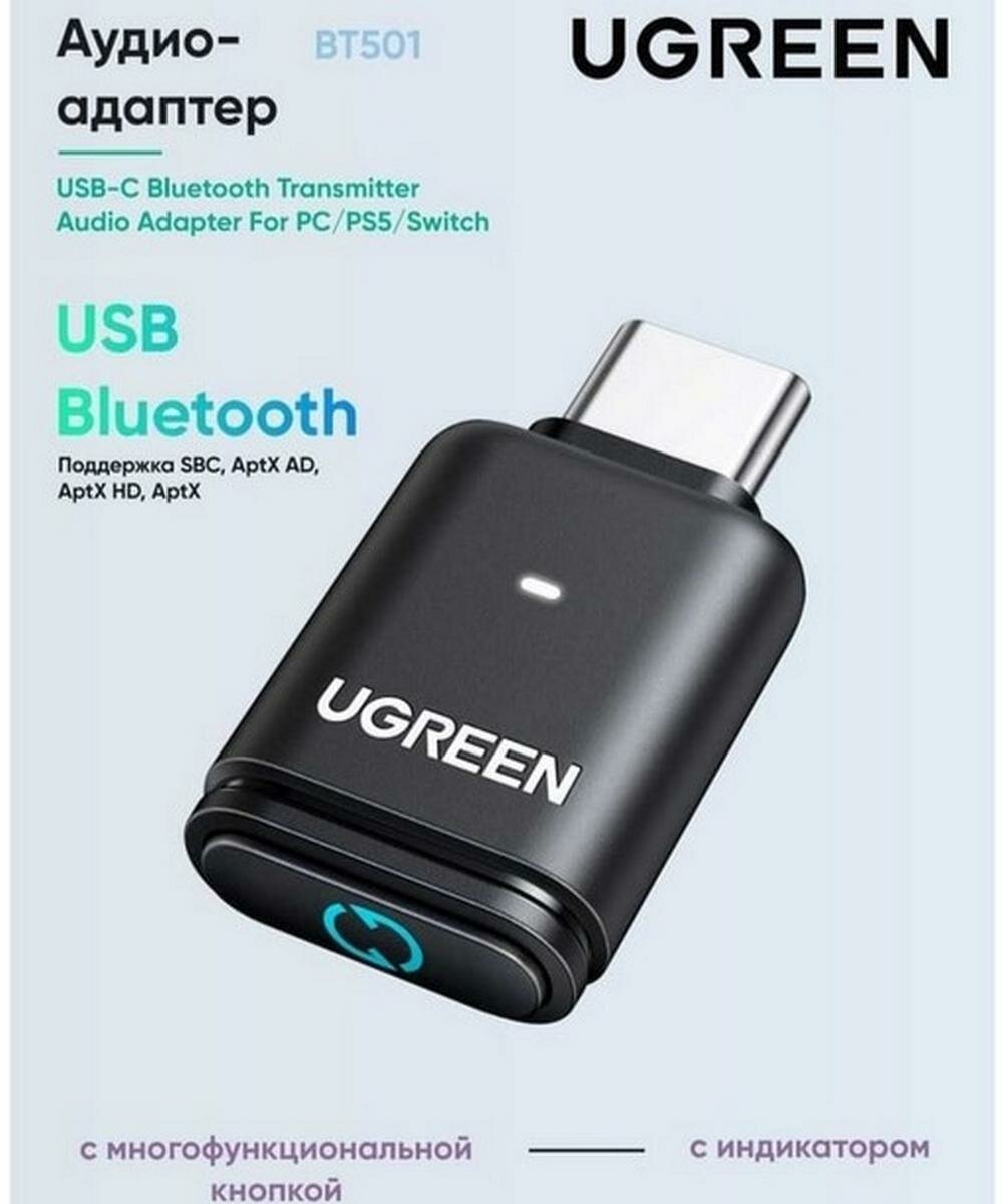 Купить Адаптер UGREEN BT501 (45008) USB-C Bluetooth Transmitter Черный Bluetooth с доставкой по всей России.