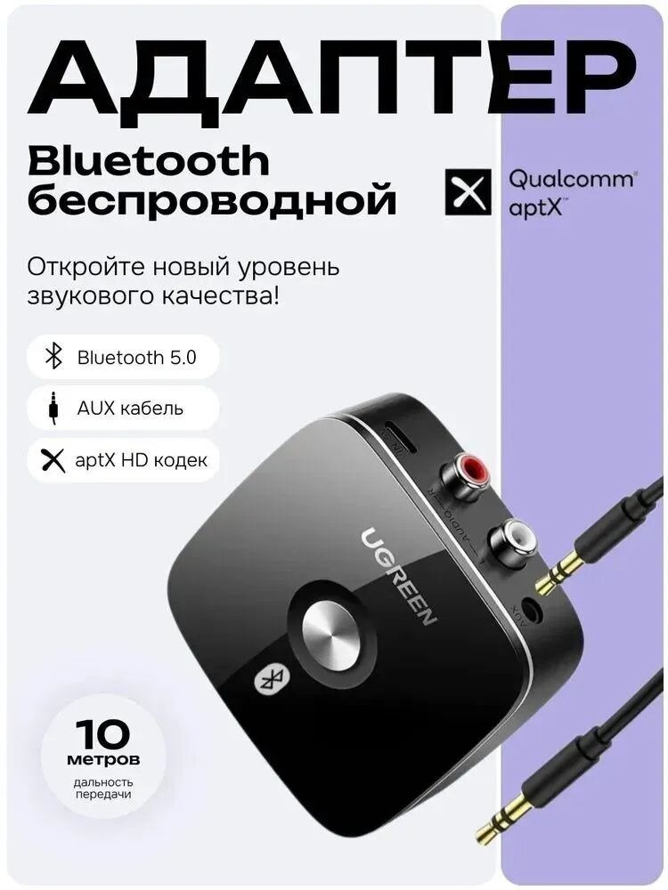 Bluetooth аудио адаптер Ugreen CM106 (40759) с поддержкой aptX HD, Bluetooth 5.0, AUX 3,5 мм +2RCA: сравнение цен, характеристики, фото, актуальное наличие и цены.