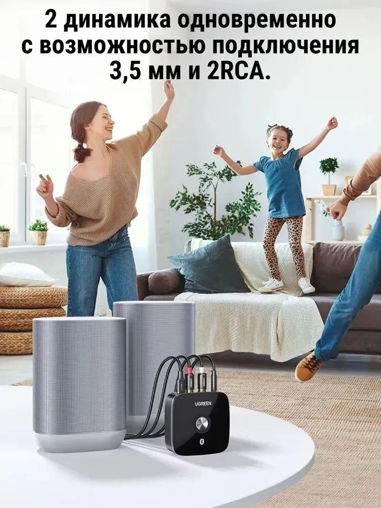 Купить Bluetooth аудио адаптер Ugreen CM106 (40759) с поддержкой aptX HD, Bluetooth 5.0, AUX 3,5 мм +2RCA с доставкой по всей России.