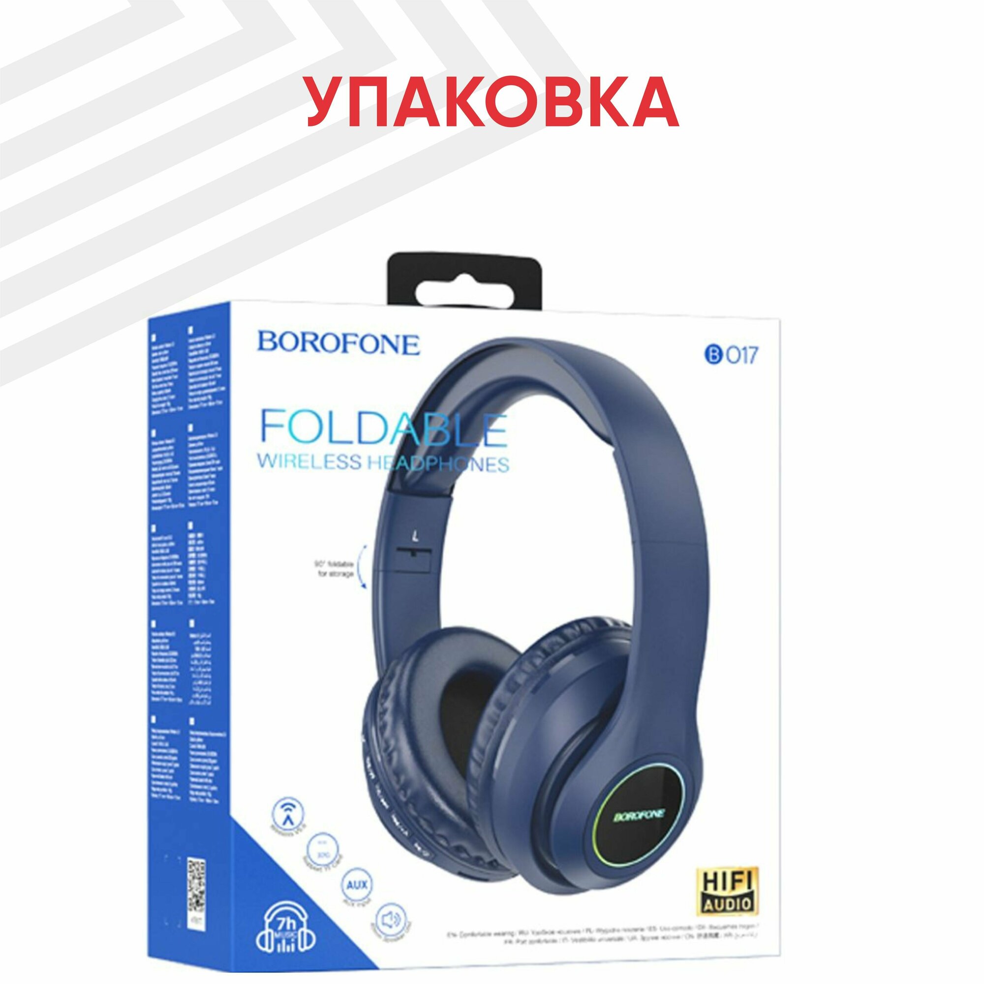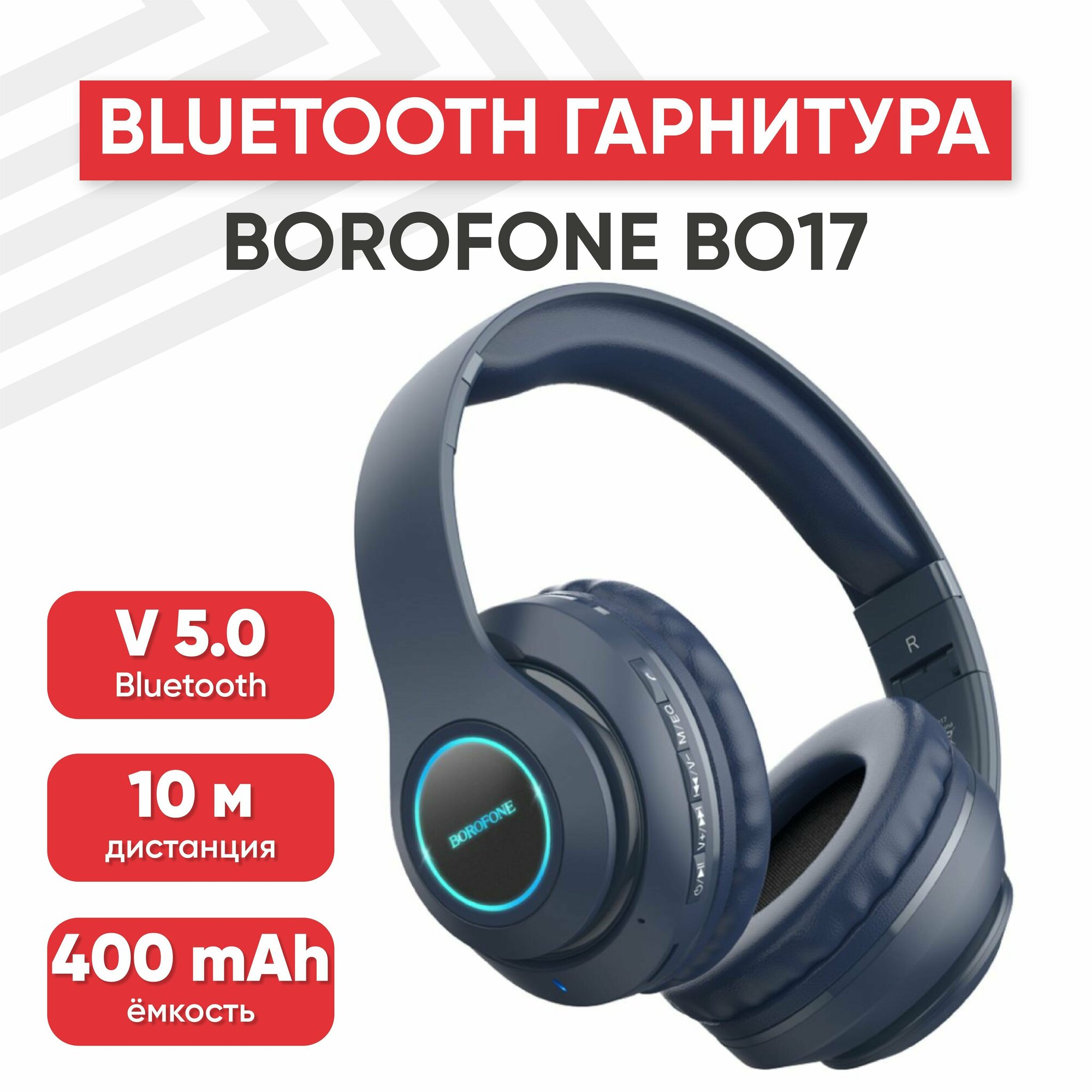 Купить Bluetooth гарнитура Borofone BO17, BT 5.0, AUX, 400мАч, MicroSD, накладные, синий с доставкой по всей России.