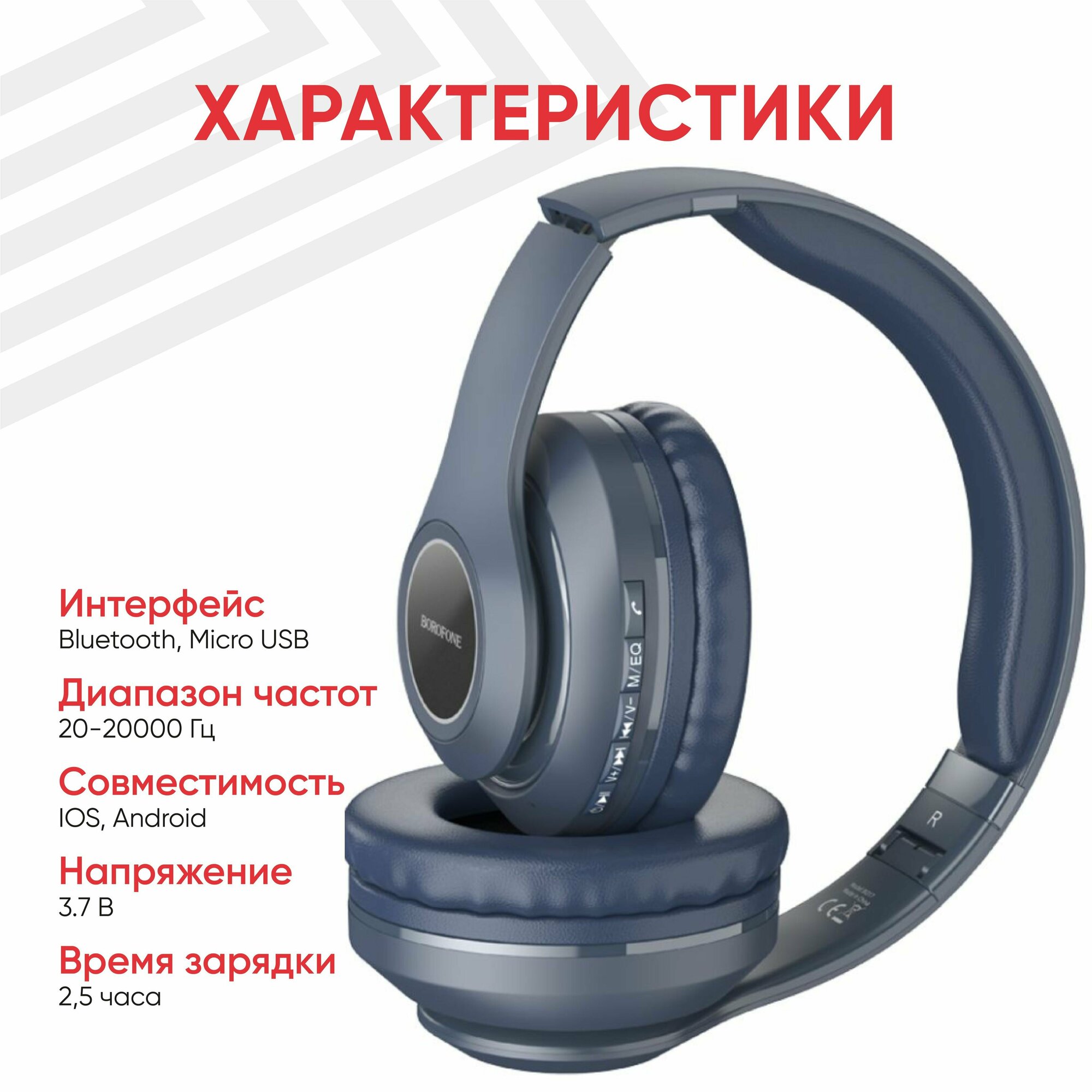 Bluetooth гарнитура Borofone BO17, BT 5.0, AUX, 400мАч, MicroSD, накладные, синий: сравнение цен, характеристики, фото, актуальное наличие и цены.