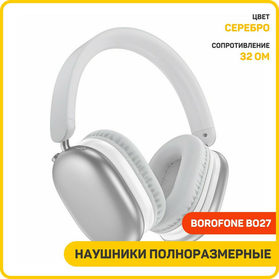 Наушники полноразмерные беспроводные Borofone BO27 (Bluetooth) серебро: сравнение цен, характеристики, фото, актуальное наличие и цены.