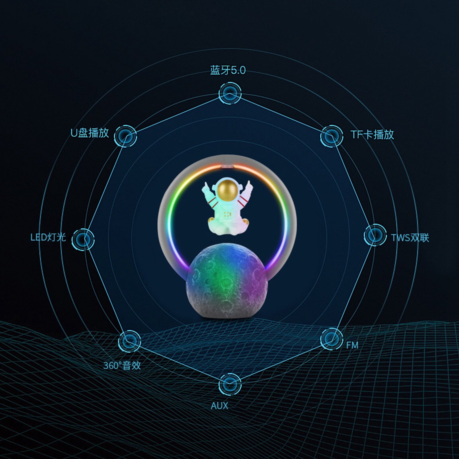 Купить Bluetooth колонка с RGB подсветкой и сенсорным управлением, 360° звук и магнитная левитация в виде астронавта 598A Silver с доставкой по всей России.