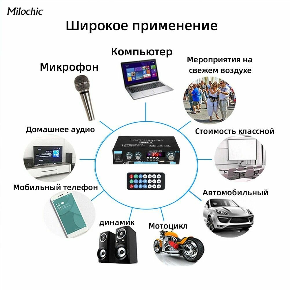 Усилитель звука, Bluetooth 5.3, микрофон, усилитель звука для колонок, звуковой стереоусилитель для автомобиля, черный