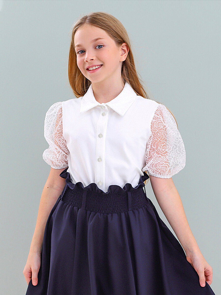 Блуза Button Blue, размер 122, белый