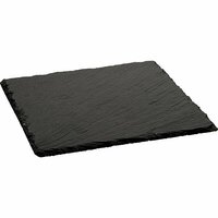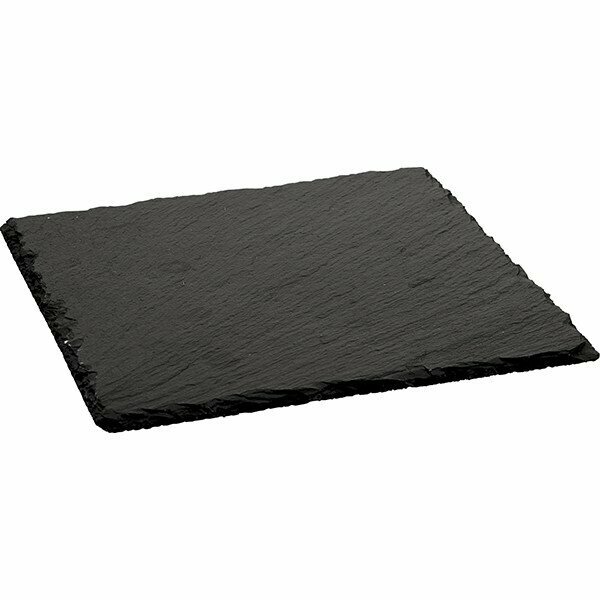 Плоское блюдо из натурального сланца, квадратной формы, с текстурированной поверхностью, предназначено для подачи различных блюд, углы закругленные, минималистичный дизайн