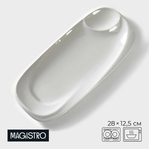Купить Блюдо фарфоровое с соусником Magistro Бланш , 28 12.5 см, белое с доставкой по всей России.