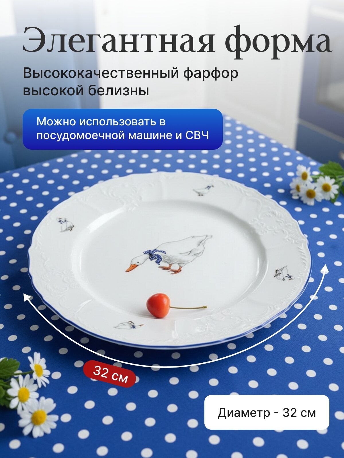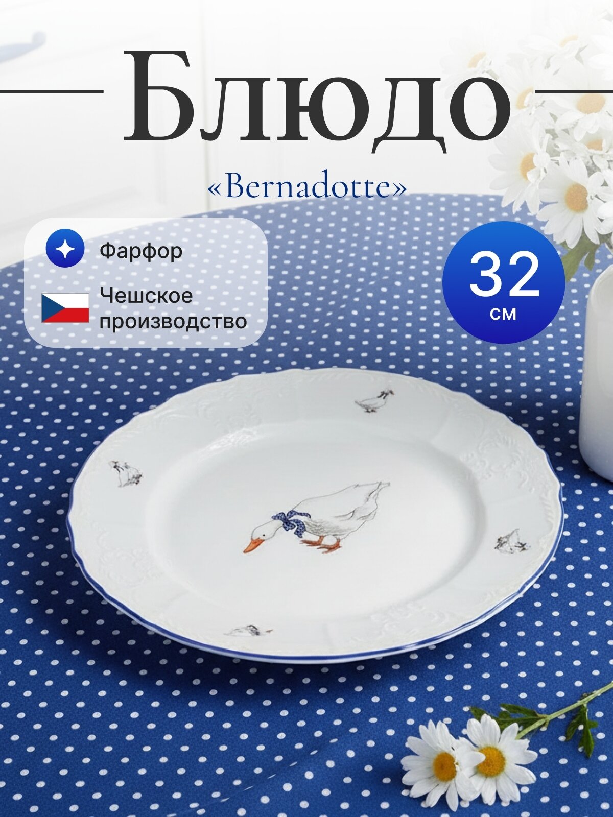 Блюдо круглое мелкое 32 см, «Bernadotte», декор «Гуси»: сравнение цен, характеристики, фото, актуальное наличие и цены.