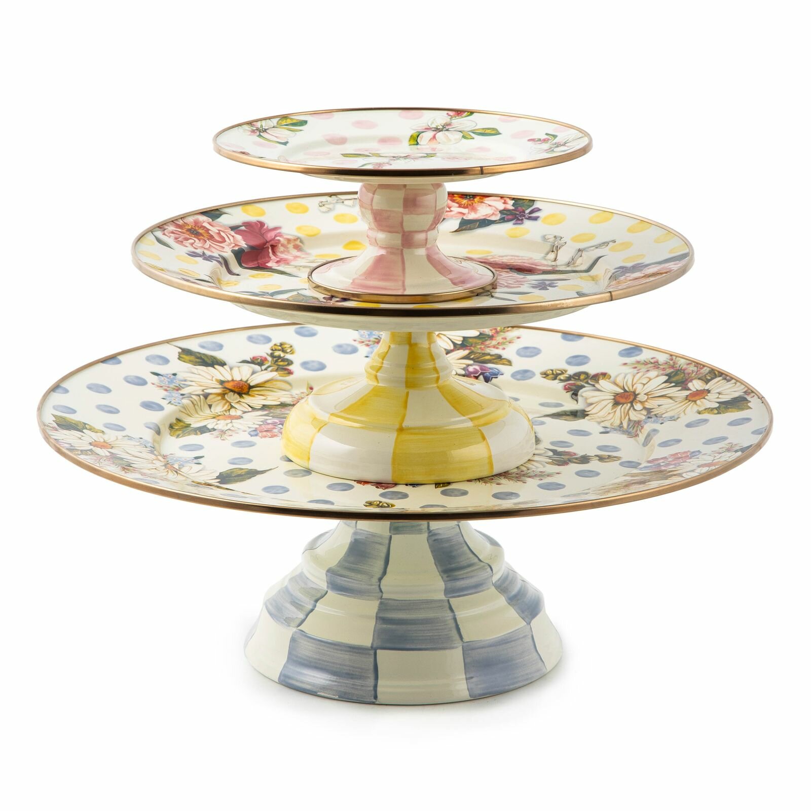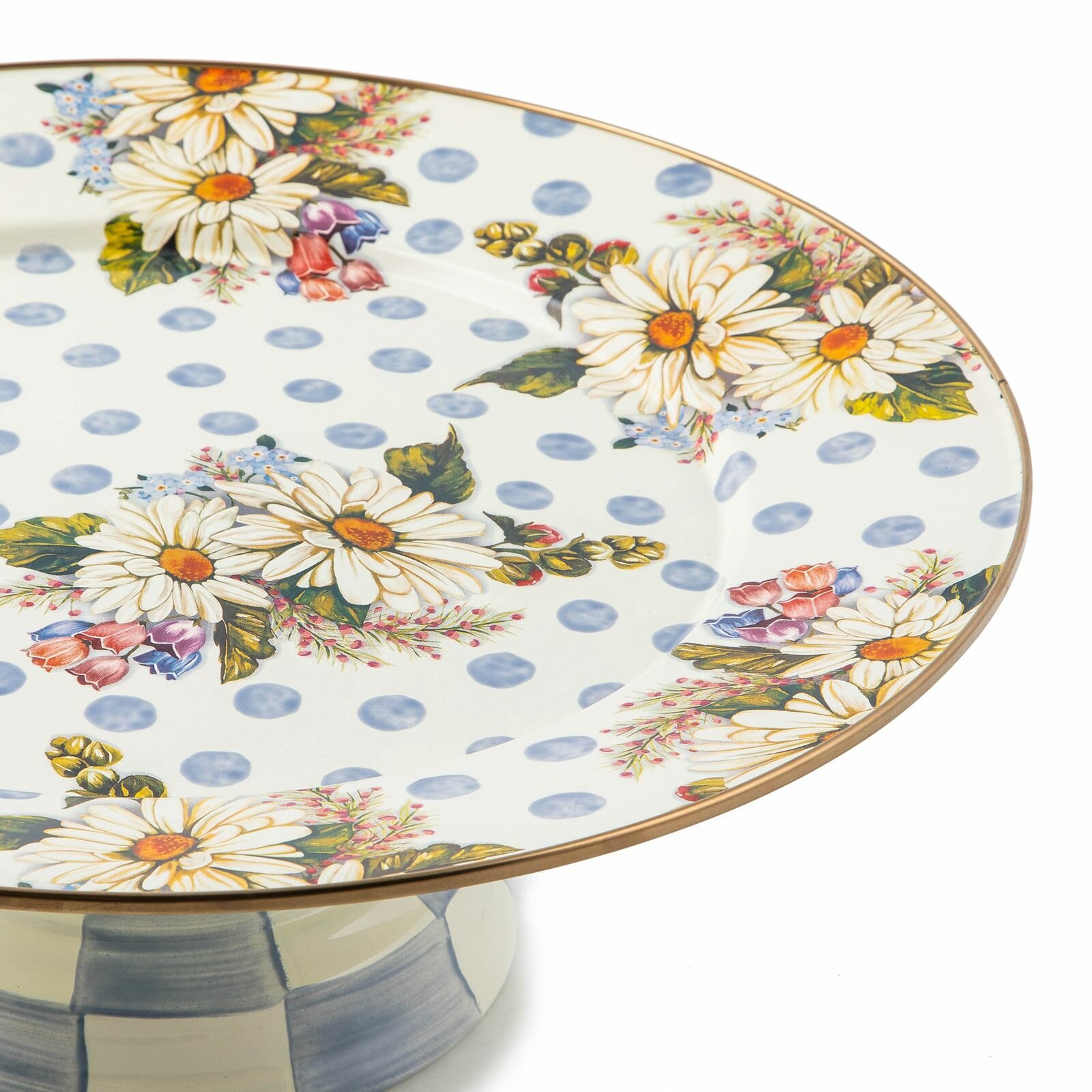 Блюдо сервировочное, на подставке, 40 см, MacKenzie-Childs, Wildflowers, синяя, клетка, цветы, металл, эмаль, бронза, ручная роспись, премиум посуда: сравнение цен, характеристики, фото, актуальное наличие и цены.