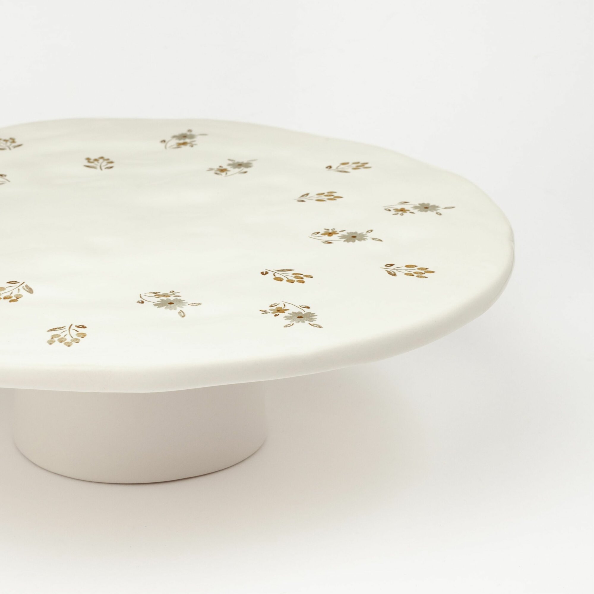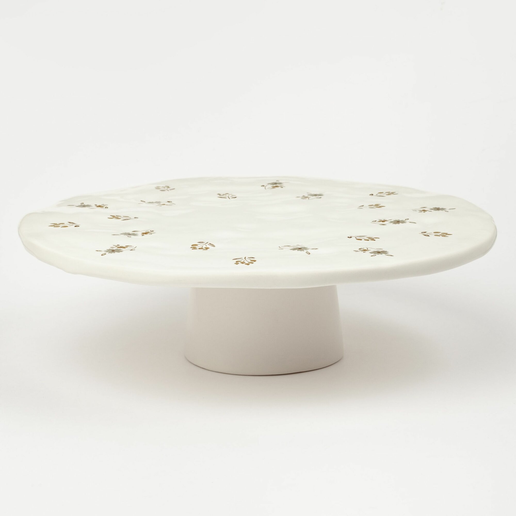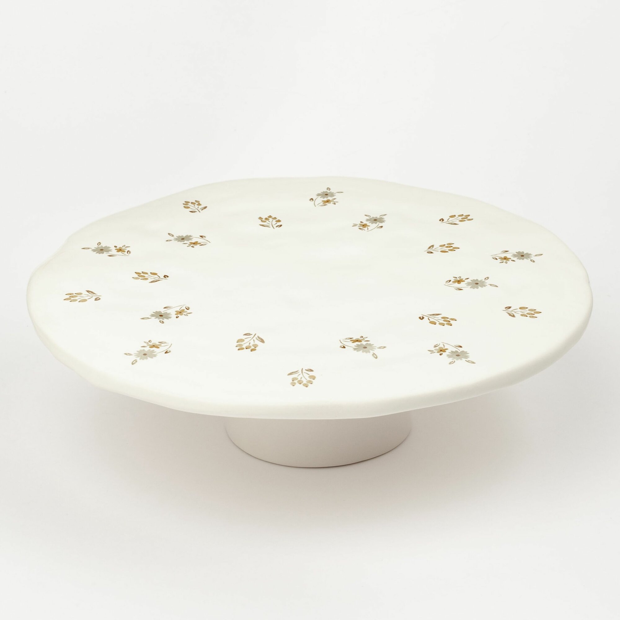 Купить Блюдо на ножке, Kuchenland, 23х7 см, керамика, молочное, Винтажные цветы, La flore с доставкой по всей России.