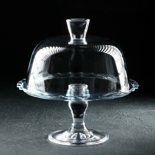 Блюдо на ножке с крышкой из стекла - красивая идея для подачи угощений на стол. Многие десерты и закуски предполагают подачу в прикрытом виде. Это позволяет предупредить обветривание и засыхание продуктов, сохраняя полезные свойства и первоначальную свежесть продуктов. На таком блюде на ножке можно подавать торты, десерты, закуски, фрукты, блинчики и многое другое. Полный диаметр блюда – 26,4 см, высота с крышкой – 25,9 см.
