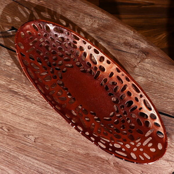 Артикул: 1992-191. Размеры: 5 x 20 x 51 см, Материал: Алюминий, Диаметр: 48 см, Вес: 942 гр, Размер упаковки: 7 x 48 x 20 см, Форма: Овал, Вид: Блюдо, Крышка: Нет, Текстура: С рельефом, Вид тарелки: Глубокая, Можно мыть в посудомоечной машине: Нет, Набор: Нет, Можно использовать в СВЧ-печи: Нет, Для горячего: Нет, Рисунок: Нет, Особенности: Без особенностей, Цвет: Коричневый.