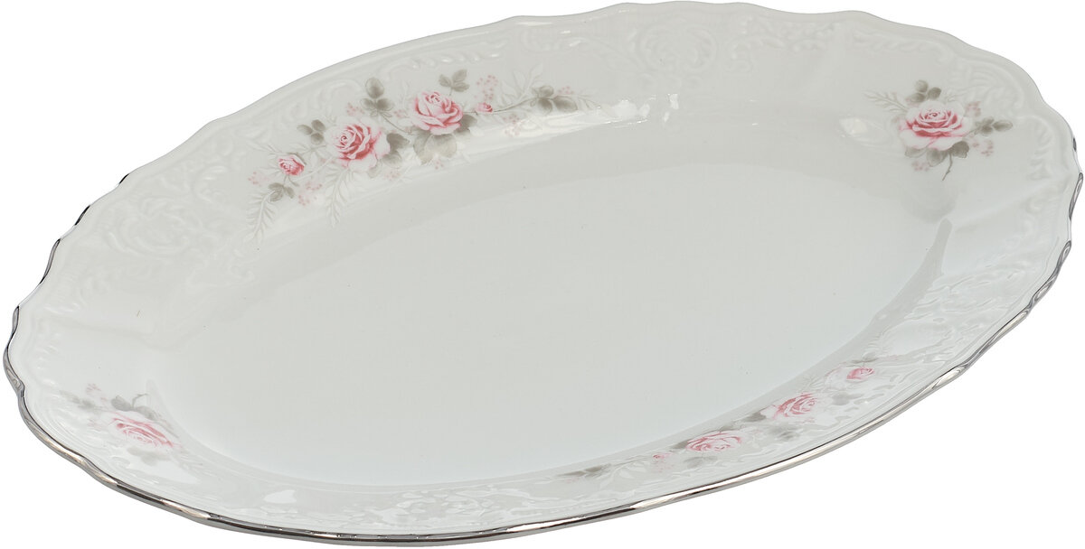 Блюдо овальное 26 см; "Bernadotte", декор "Бледные розы, отводка платина", Thun/ БТФ0272