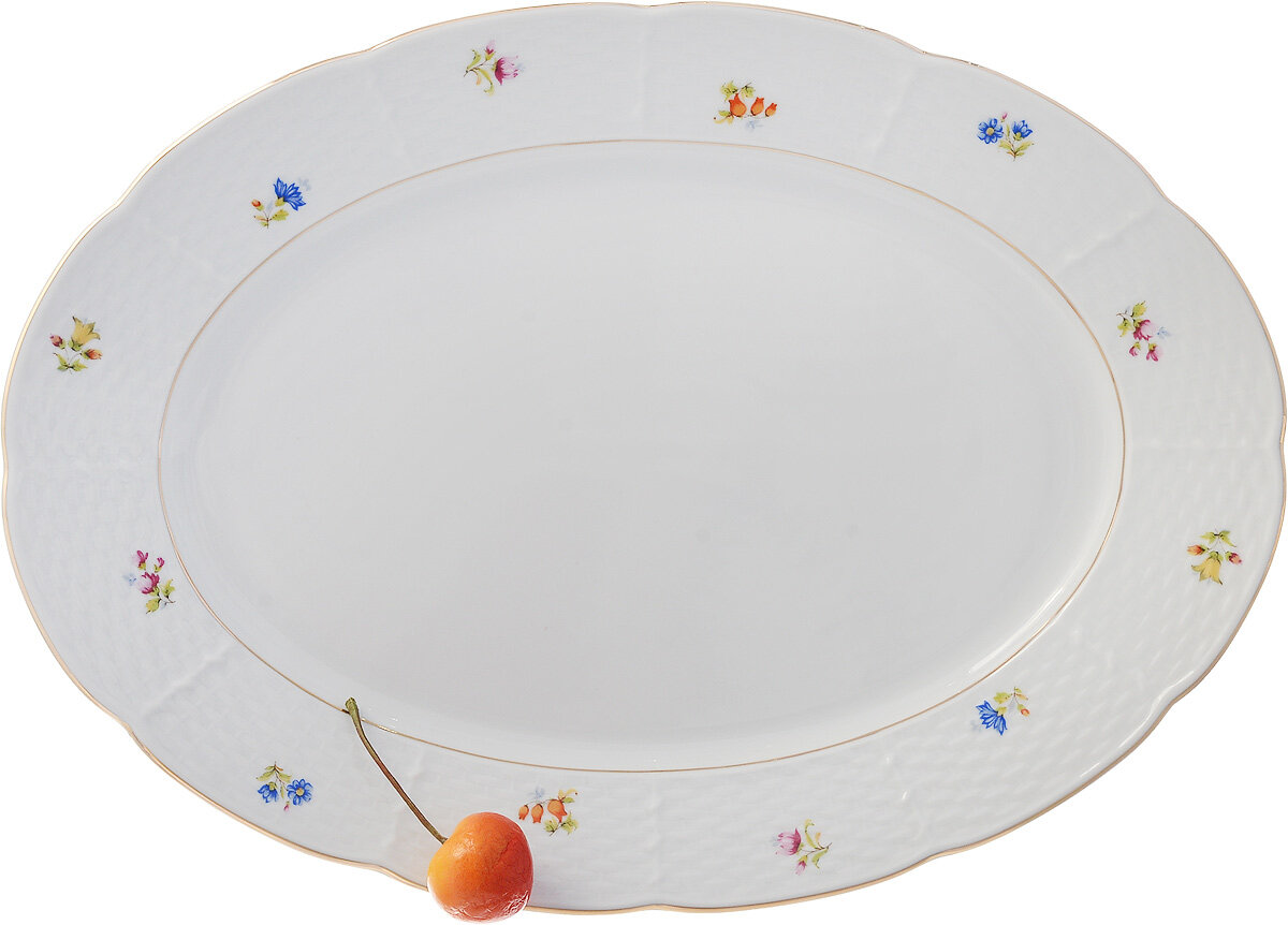 Блюдо овальное 32 см; «Natalie», декор «Мелкие цветы, отводка золото», Thun/ БТФ0821