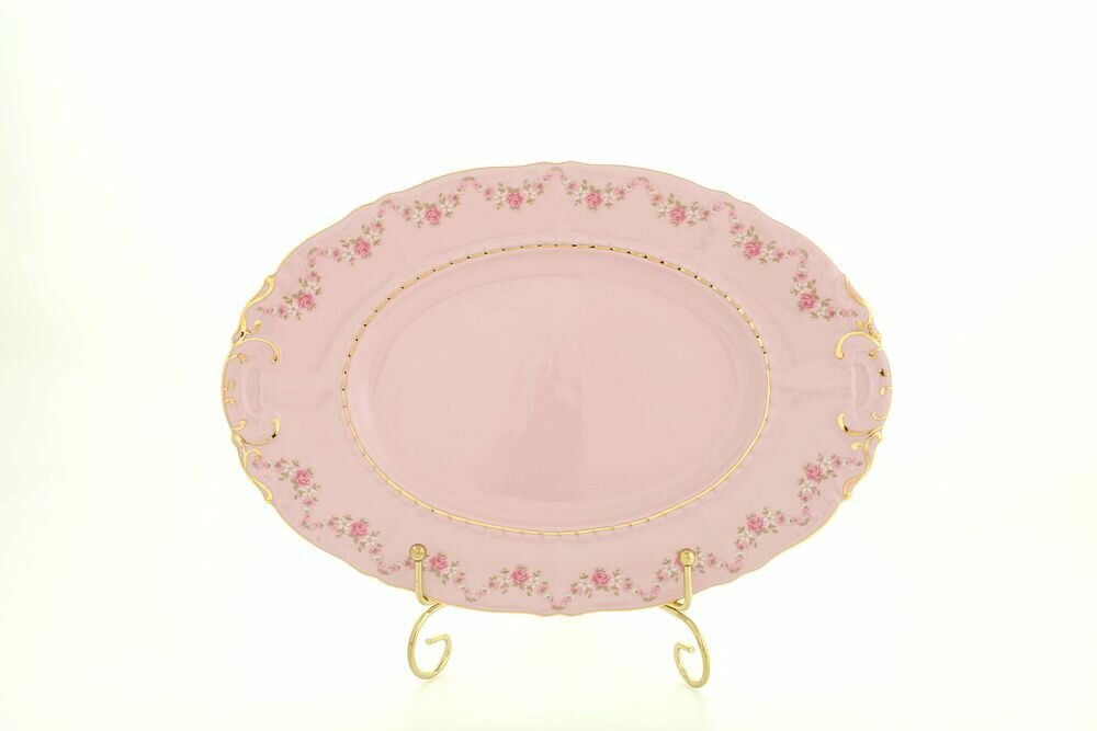Блюдо овальное 55,5 см Leander Соната декор 0158 Мелкие цветы Розовый фарфор