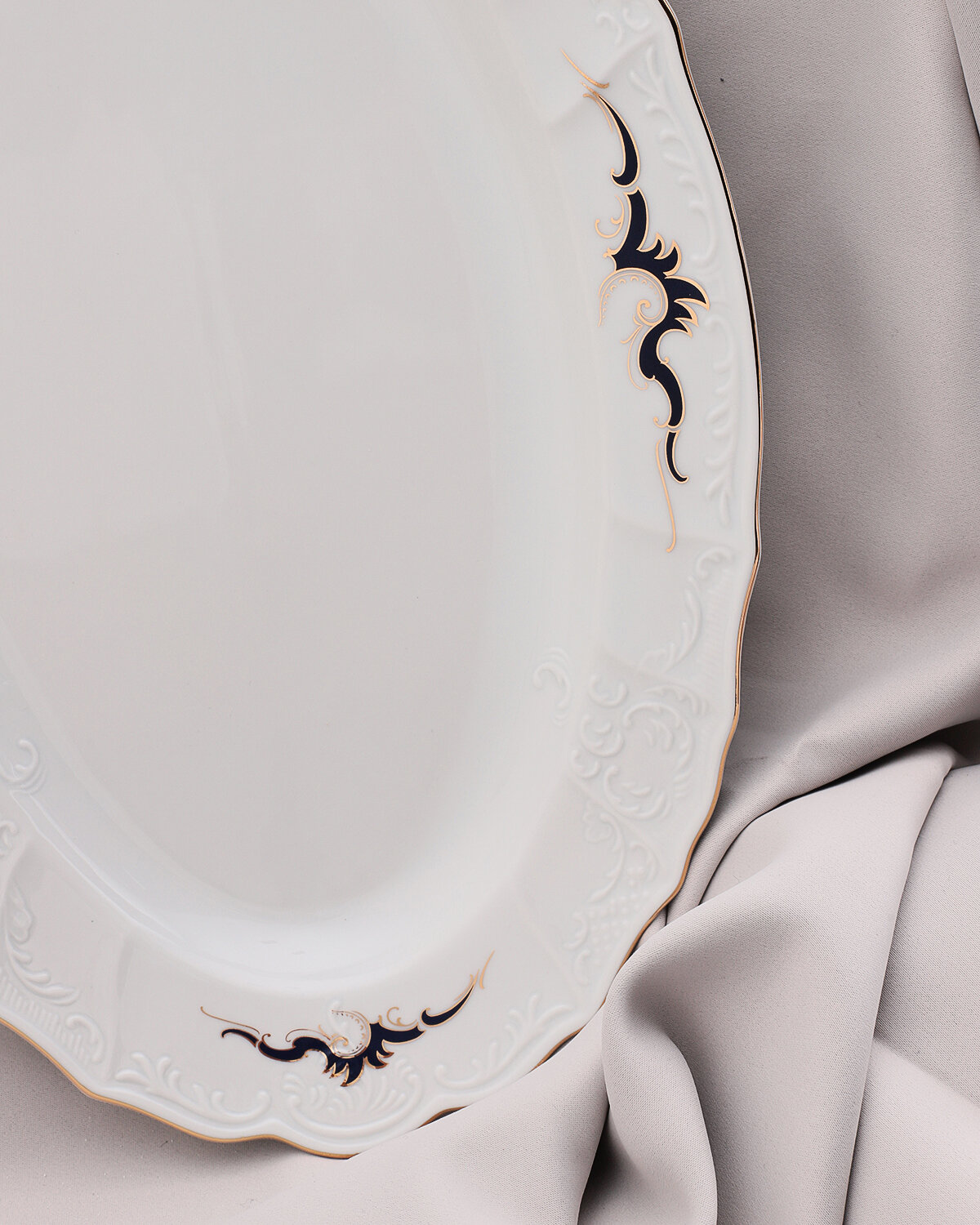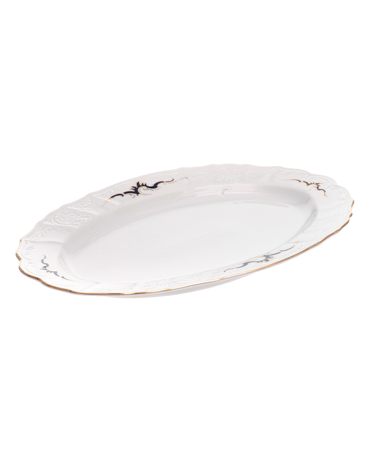 Блюдо овальное 36 см; "Bernadotte", декор "Синие вензеля", Thun/ БТФ1318