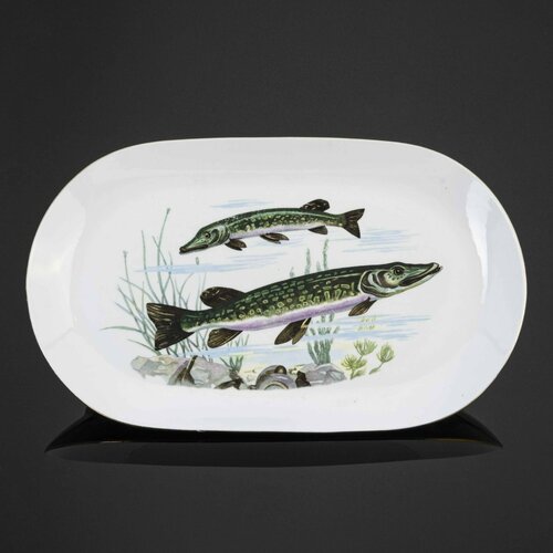 Блюдо овальной формы с декором в виде рыб, фарфор, деколь, золочение, Kahla: сравнение цен, характеристики, фото, актуальное наличие и цены.