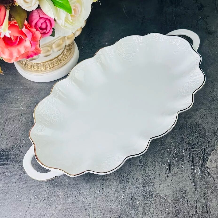 Блюдо с ручками Lenardi Maria gold 35см, фарфор
