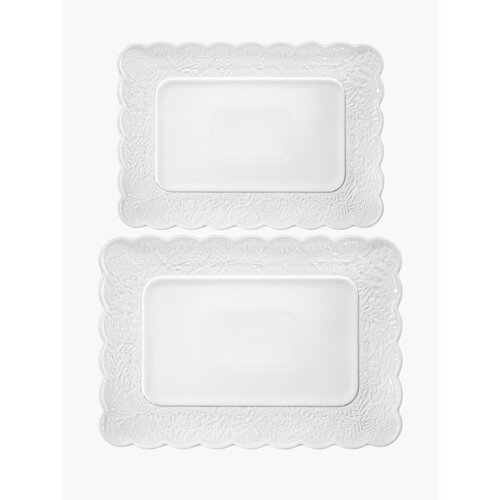 Набор 2 прямоугольных блюд из серии "Лесная фантазия" от Elan Gallery предназначен для эстетичной сервировки стола. В комплект входят блюда разных размеров. Размер первого изделия – 36х23,5х2,5 см, второго – 31,5х21,5х2 см. Выполнены из белого фарфора, имеют волнистые края. Коллекция посуды "Лесная фантазия" украшена изящным рельефным узором в виде цветов и порхающих бабочек. Она навевает фантазии о лесной поляне — благоухающей и согретой лучами солнца. Большие сервировочные тарелки подойдут для подачи рыбных и мясных блюд, а также сыра и колбасы. Благодаря их вместительности можно красиво подать целую курицу, рыбу и любое мясо. В отличие от керамики фарфоровые тарелочки не впитывают цвет продуктов и легко отмываются, благодаря чему надолго сохраняют свою белизну. Используйте для сервировки сырной и мясной нарезки, овощей и фруктов, чтобы угостить большое количество гостей. Разместите кусочки торта или пирога, а также другую выпечку и десерты. За счёт своей формы подойдут для красивой подачи суши, роллов и бутербродов. Благодаря лаконичному дизайну изделия впишутся в интерьер любой кухни и столовой. Вместительны, поэтому удобны для разноса и подачи закусок на фуршете и вечеринке. Не рекомендуется применять абразивные моющие средства. Беречь от резких перепадов температур и механических повреждений. Подходят для посудомоечной машины и микроволновой печи. Комплект поставляется в стильной картонной коробке. Вам не придётся искать дополнительную подарочную упаковку, чтобы сделать сюрприз близким на праздник. Праздничная посуда – хороший вариант для подарка. В коллекции бренда Элан Галерея можно найти много красивого кухонного и столового инвентаря, а также собрать сервиз на свой вкус. Коллекция "Лесная фантазия" от Elan Gallery наполнит повседневные моменты лёгкостью и сказочной атмосферой, а также позволит создать красивую сервировку праздничного стола!