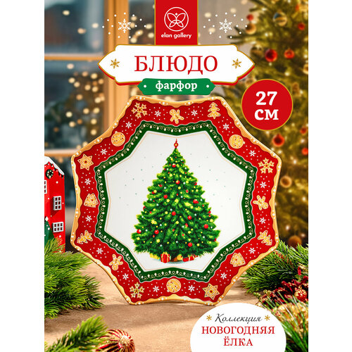 Большое блюдо Elan Gallery "Новогодняя ёлка" размером 27х27х2 см выполнено из фарфора нового поколения new bone china. Благодаря современным технологиям он не уступает другим видам фарфора в прочности, но при этом экологичнее в производстве. Фигурное блюдо имеет оригинальную форму звезды. Дизайнерская коллекция посуды от бренда Elan Gallery украшена изображением пушистой ёлочки и узором из имбирных пряников и снежинок. Она создаст в вашем доме атмосферу волшебства и подарит праздничное настроение. Сервировочное блюдо в виде звёздочки украшено ярким праздничным рисунком. Тарелка подойдет для подачи сыра, колбасы, рыбных или мясных блюд. Можно использовать для сервировки сырной и мясной нарезки, бутербродов на праздник, а также овощей и фруктов для угощения большого количества гостей. Эргономичная форма тарелочки позволит разместить на ней любые закуски из мяса или рыбы. Удобно подавать на сервировочном блюде кусочки торта, пирога и другие десерты и сладости. Отличное решение для эстетичной сервировки шашлыка, роллов и даже канапе. Фарфоровая посуда отличается от керамической повышенной плотностью. Фарфор не впитывает цвет продуктов и не деформируется от влаги, чему может быть подвержена керамика. Не рекомендуется применять абразивные моющие средства. Можно использовать в микроволновой печи и мыть в посудомоечной машине. Поставляется в стильной картонной упаковке. Подарочное фарфоровое блюдо порадует ваших близких на любой праздник! Благодаря яркой коробочке вам не нужно искать дополнительную подарочную упаковку. Блюдо "Новогодняя ёлка" станет украшением вашей кухни или приятным подарком для любой хозяйки, которая ценит изящную сервировку. В нашей коллекции товаров для дома вы найдёте все необходимое, чтобы встретить Новый год и Рождество в тёплом семейном кругу. В коллекции бренда Elan Gallery можно найти много предметов декора, красивого кухонного и столового инвентаря, а также собрать сервиз на свой вкус.