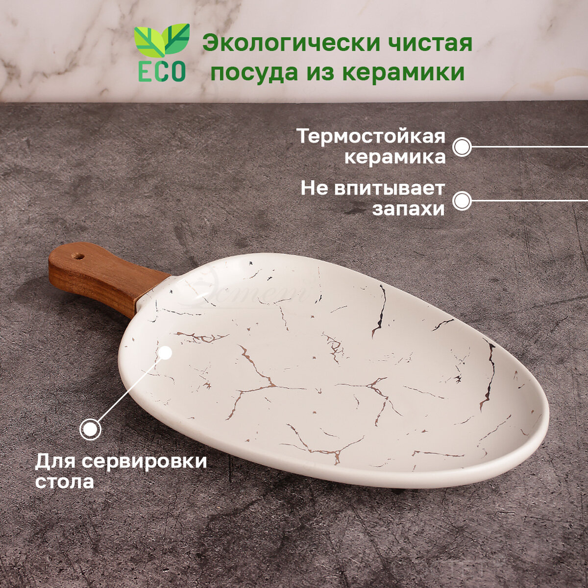 Купить Блюдо сервировочное для подачи с ручкой керамическое. с доставкой по всей России.