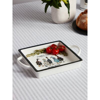 Квадратное блюдо для запекания выполнено из упрочнённого фарфора с толщиной стенок 6 мм. Фарфоровая форма с ручками имеет общий размер 25.5х18 см, рабочий размер составляет 17х16.5 см, а высота 3.5 см (высота с учетом ручек 4 см). В этой квадратной форме прекрасно запекается мясо, овощи, рыба, лазанья, пирог – любые Ваши кулинарные шедевры. Или же Вы можете использовать её, как сервировочное блюдо для подачи и переложить в неё Ваше горячее угощение, приготовленное другим способом. Кроме того, такое блюдо с ручками можно использовать для сервировки и подачи салата, фруктов, закусок и снеков. Форма отлично подойдёт в качестве блюда для шашлыка, ведь посуда из фарфора прекрасно сохраняет тепло.