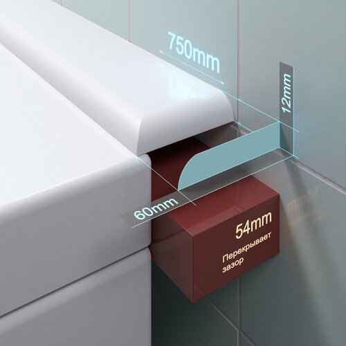 Ширины бордюра - 60 мм хватит, для того чтобы перекрыть зазор до 54 мм. Благодаря своим оптимальным размерам, он не только защитит от попадания воды в щели и предотвратит распространение плесени, но и хорошо скроет все мелкие недостатки.