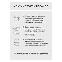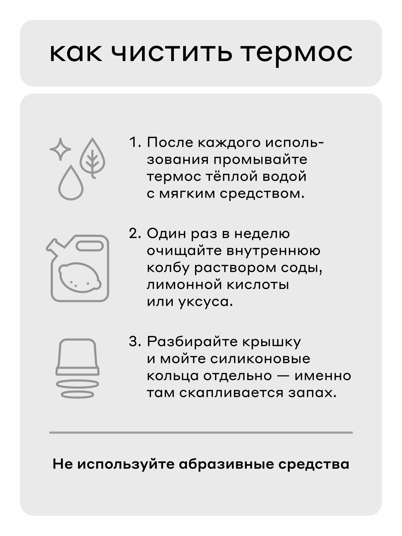 Jerrycan сделан из нержавеющей стали 18/8. Отдельные элементы пробки и крышки-чашки выполнены из пищевого силикона и безопасного пластика BPA-free. На глухой пробке термоса сделано металлическое основание, благодаря чему еда не соприкасается с пластиком, а внутри колбы не накапливаются запахи. Силиконовые кольца на крышке обеспечивают 100% герметичность.