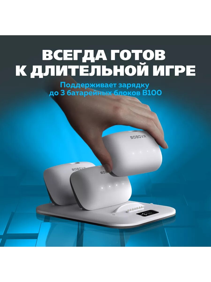 BoboVR явно знает, как обеспечить максимальный комфорт для своих пользователей, предлагая высококачественные и надежные решения. Эта зарядная станция станет незаменимым аксессуаром в вашей коллекции VR-оборудования. В комплекте идут все необходимые кабели и инструкции для быстрого начала работы. Зарядная станция BoboVR BD3 для аккумуляторов B100 — ваш лучший спутник в мире виртуальной реальности, позволяющий оставаться в игре на протяжении долгих часов без необходимости беспокоиться о зарядке. Станьте свидетелем качественной зарядной станции, которая не только соответствует, но и превосходит все ваши ожидания.