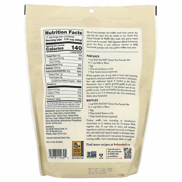 Bob’s Red Mill, Classic Pancake & Waffle Mix, смесь для блинов и вафель, без глютена, 680 г: сравнение цен, характеристики, фото, актуальное наличие и цены.