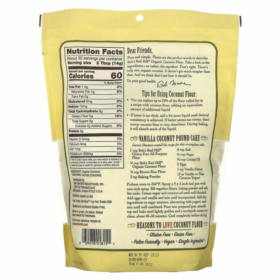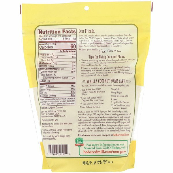 Bob’s Red Mill, кокосовая мука, без глютена, 453 г (16 унций): сравнение цен, характеристики, фото, актуальное наличие и цены.