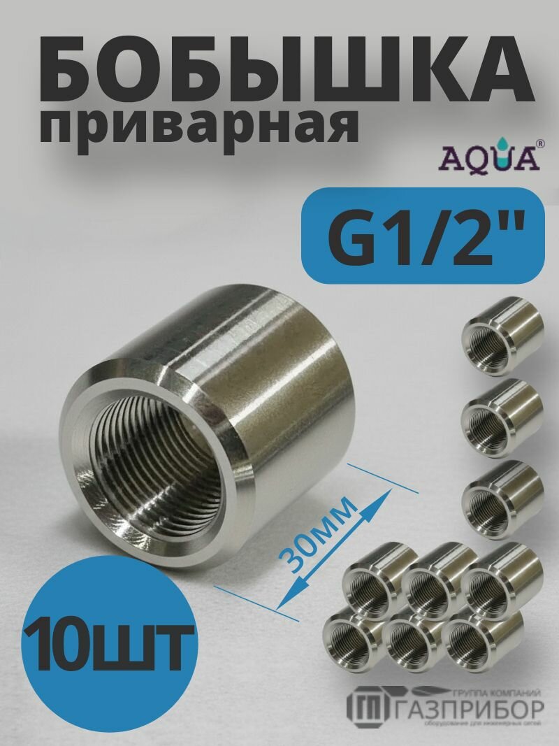 Бобышка приварная G1/2" (L=30 мм), Сталь 20. Для установки термодатчиков и манометров. Бренд Aqua