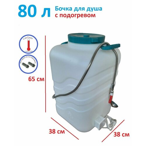 Пластиковая бочка для летнего душа 80 литров с подогревом и гибким душевым шлангом