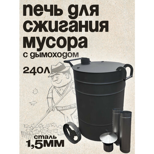 Бочка для сжигания мусора Круглая 1,5 мм. — Большая 240 литров с колосником 3 мм. и дымоходом: сравнение цен, характеристики, фото, актуальное наличие и цены.