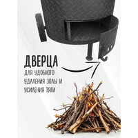 Бочка для сжигания мусора. Круглая большая 3 мм. Высота 1005 мм. Диаметр 520 мм. Сталь Рифленая 3 мм. Приварен Патрубок диаметром 108 мм. Окрашено ОГНЕУПОРНОЙ краской церта 1200 градусов Верхняя крышка на петлях для загрузки листьев, веток, мусора и т. д. Нижняя дверца для усиления тяги и удаления золы. В комплекте съемный колосник 3 мм, труба 1 метр и зонтик Колеса БОЛЬШИЕ СТАЛЬНЫЕ для легкого перемещения по участку. Заводское изделие серийного производства Остерегайтесь ЗАПАТЕНТОВАНЫХ ПОДДЕЛОК Вес: 49 кг.