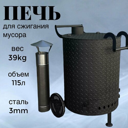 Бочка для сжигания мусора Круглая Усиленная 3 мм, Мини с колосником и дымоходом, 115 литров: сравнение цен, характеристики, фото, актуальное наличие и цены.