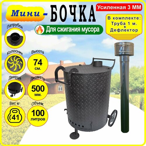 Купить Бочка для сжигания мусора Круглая Усиленная 3 мм. — Мини с колосником, трубой и дефлектором. с доставкой по всей России. Бочка для сжигания мусора Круглая Усиленная 3 мм. — Мини с колосником, трубой и дефлектором.: сравнение цен, характеристики, фото, актуальное наличие и цены.