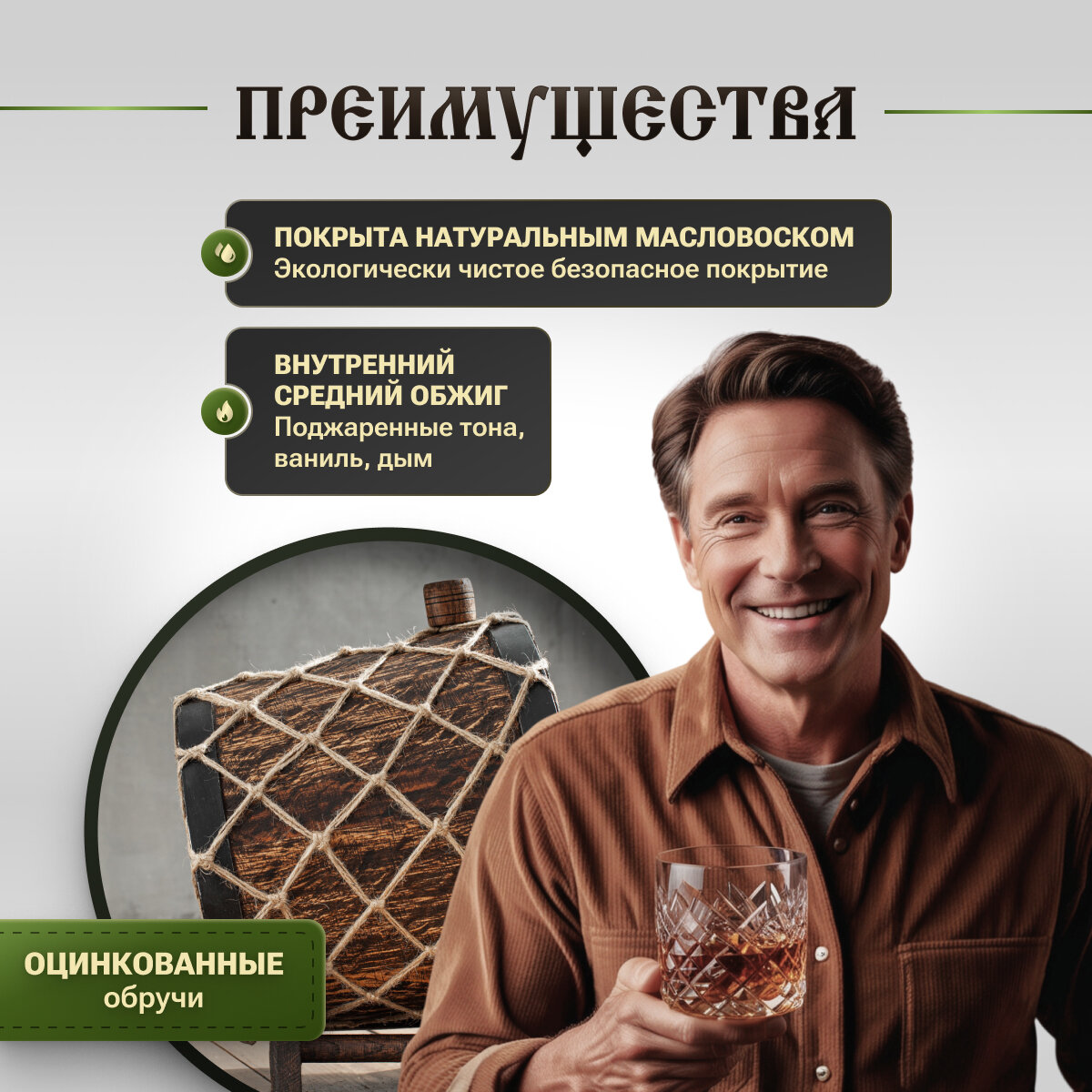 Жбан дубовый 6 литров для настаивания И хранения алкогольных напитков, самогона. Жбан, сделанный вручную из кавказского дуба, без применения клея или других химических веществ это отличный подарок для родных, друзей и коллег на юбилей, День рождения, 23 февраля, 14 февраля. Для производства жбана используются деревья старше 100 лет. Обручи из оцинкованной стали. В комплекте жбан, подставка, кран дубовый, две пробки. Благодаря свойствам дуба напиток, во время настаивания, приобретает глубокий, насыщенный вкус и аромат меда, вишни, ванили, грецкого ореха, сдобной выпечки, шоколада и чернослива. Внутренний средний обжиг добавляет напитку благородства и красивый золотистый цвет. Внешняя обработка натуральным пчелиным воском уменьшает долю ангела, защищает от высыхания и позволяет хранить дубовый жбан в домашних условиях. Жбан ЛЕР с гравировкой и в оплетке своим внешним видом украсит интерьер любого помещения и будет отличным подарком. При правильном использовании срок службы не ограничен. Продукцию бренда «ЛЕР» Вы сможете найти по запросам: бочка дубовая, бочка из дуба, бочка для самогона, бочка для вина, бочка для коньяка, бочка для виски, бочка с краном, бочонок для пива, дубовая бочка, дубовый бочонок, жбан дубовый, жбан для вина, домашний самогон, подарок папе, подарок коллеге, подарок на 23 февраля, подарок на день рождения, подарок на день влюбленных, подарок мужчине, подарок дедушке, подарок начальнику, подарок любимому, подарок ручной работы, сувенир.