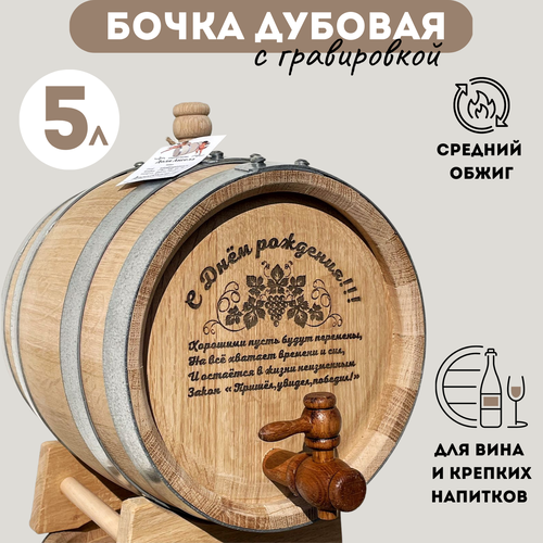 Купить Дубовая бочка Доля Ангела «С Днем Рождения», 5л, с гравировкой, с краном и подставкой с доставкой по всей России.