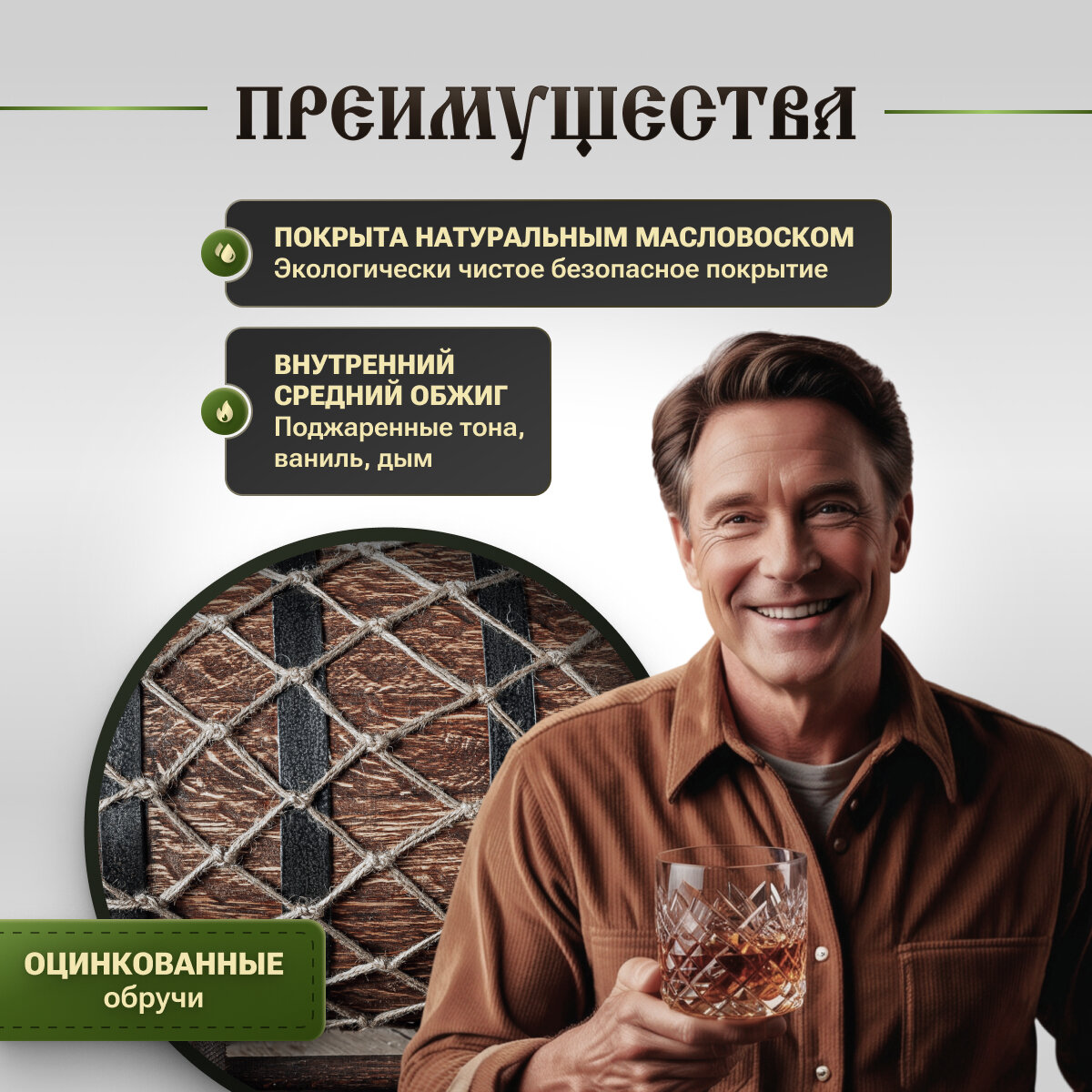 Бочка дубовая 5 литров для приготовления и хранения алкогольных напитков. Это традиционные бондарные изделия, сделанные вручную из кавказского дуба, без применения клея или других химических веществ. Обручи из оцинкованной стали, толщина клепки 27 мм, обжиг средний, покрытие - натуральный пчелиный воск. Для производства бочек используются деревья старше 100 лет. Благодаря свойствам древесины напиток приобретает глубокий, насыщенный вкус и аромат меда, вишни, ванили, грецкого ореха, сдобной выпечки, шоколада и чернослива. Внутренний обжиг добавляет напитку благородства и красивый золотистый цвет. Бочки от 1-25 л позволяют ускорить выдержку за счет большей площади дуба на единицу объема напитка по сравнению с бочками больших объемов. Благодаря обработке пчелиным воском бочка подходит для хранения в домашних условиях. Вощение бочки защищает ее от высыхания и снижает испарение алкоголя. Бочка ЛЕР будет отличным подарком для всех любителей домашних алкогольных напитков. А своим внешним видом украсит интерьер любого помещения. При правильном использовании срок службы не ограничен. Фактический рисунок гравировки на бочке может отличаться от рисунка на фотографии.