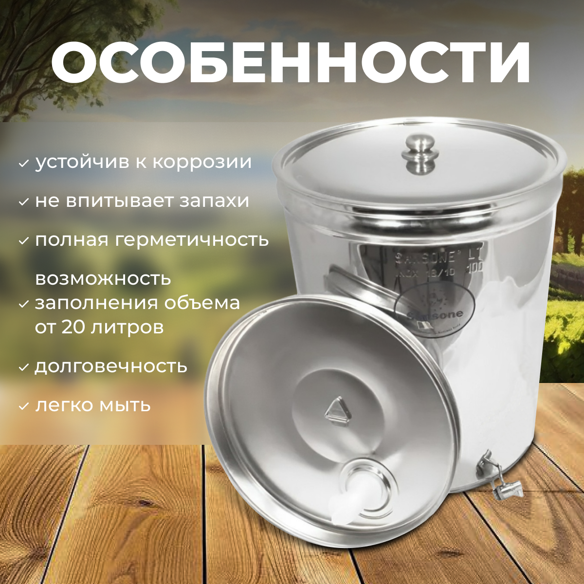 Бочка из нержавеющей стали 300 л для брожения вина и браги от известного итальянского производителя Sansone – Главное преимущество этой модели – инновационная пневмокрышка для брожения, обеспечивающая абсолютную герметичность при любом уровне наполнения, что особенно важно при изготовлении таких напитков, как вино, исключая контакт с воздухом во время брожения, что критически важно для сохранения вкуса и аромата. Этот бак из нержавеющей стали, был разработан специально для приготовления вина, браги премиум-класса и хранения уже готовых напитков. В нем прекрасно можно хранить другие невязкие жидкости, обеспечивая их сохранность и чистоту. Главное преимущество этой бочки из нержавейки с пневмокрышкой – это, конечно же, материал. Высококачественная нержавеющая сталь гарантирует долговечность, устойчивость к коррозии и абсолютную безопасность для здоровья. Вы можете быть уверены, что ваши напитки гарантированно не приобретут посторонних запахов и вкусов.