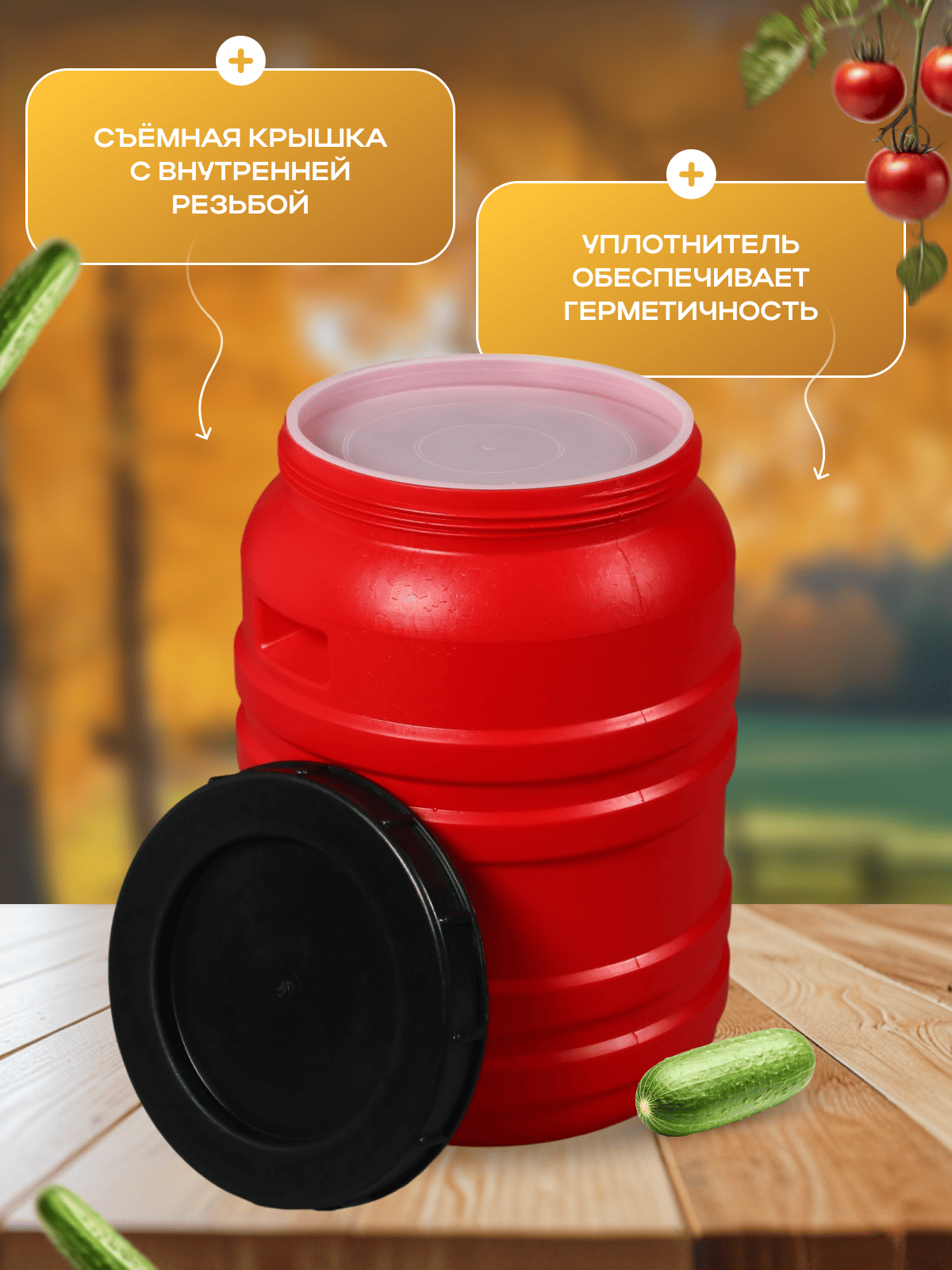 Бочка пищевая, 50 л, горловина 27 см, с крышкой, Летом практически каждая семья стремится проводить больше времени за городом. Бочка пищевая, 50 л, горловина 27 см, с крышкой, — прекрасный выбор для комфортного отдыха и эффективного труда на даче, который будет радовать вас достойным качеством. (1526615)